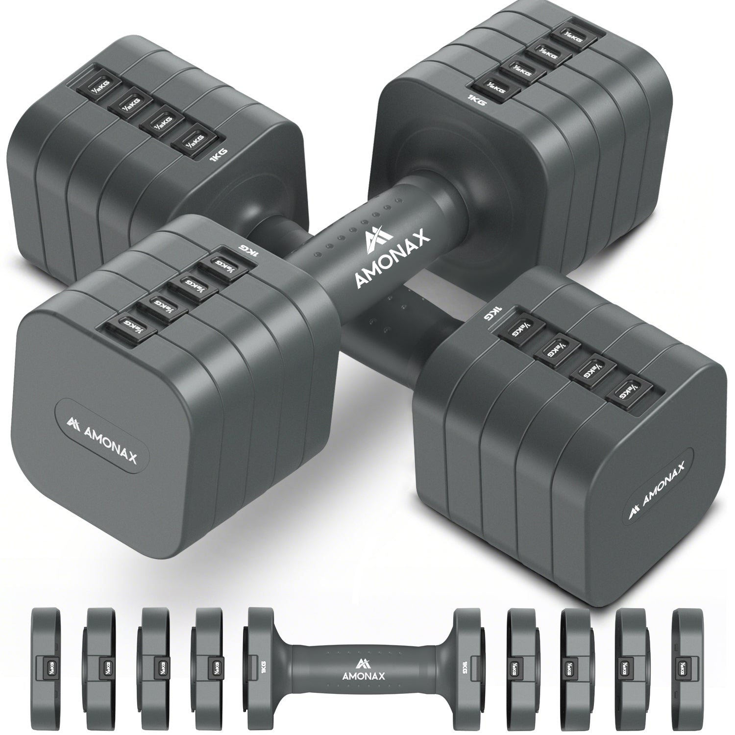 Amonax adjustable dumbbell set replaces multiple pairs of dumbbells for women, offering a weight range from 2 lbs to 5 lbs per dumbbell. This adjustable dumbbell set system allows for gradual strength progression, making it ideal for both beginners and experienced users.
